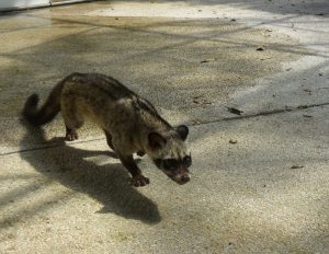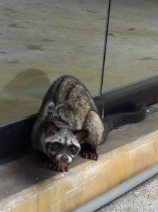 In other news, a juvenile Asian palm civet fell into the middle well of the underground gallery at Rimbun Dahan and had to be rescued. The glass doors of the well were opened, and it escaped into the gallery, where it quickly found a nice dark space in the storage area, and was difficult to persuade to leave. Angela has given instructions that if it happens again, a ladder is to be put down into the air well. It works for snakes, so it should work for musang too!