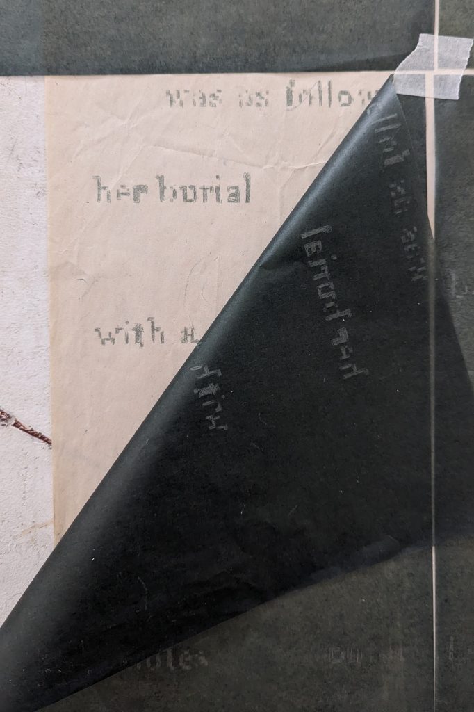 I also revisited an idea that I have wanted to pursue for a while: working with copper and aluminum as grounds for painting and mixed media, which connects back to my interest in urban decay and industrial materials. As an alternative to using actual metals, I painted copper tones on paper instead, using letter decals as a resist material between paint layers, still inspired by the batik process.