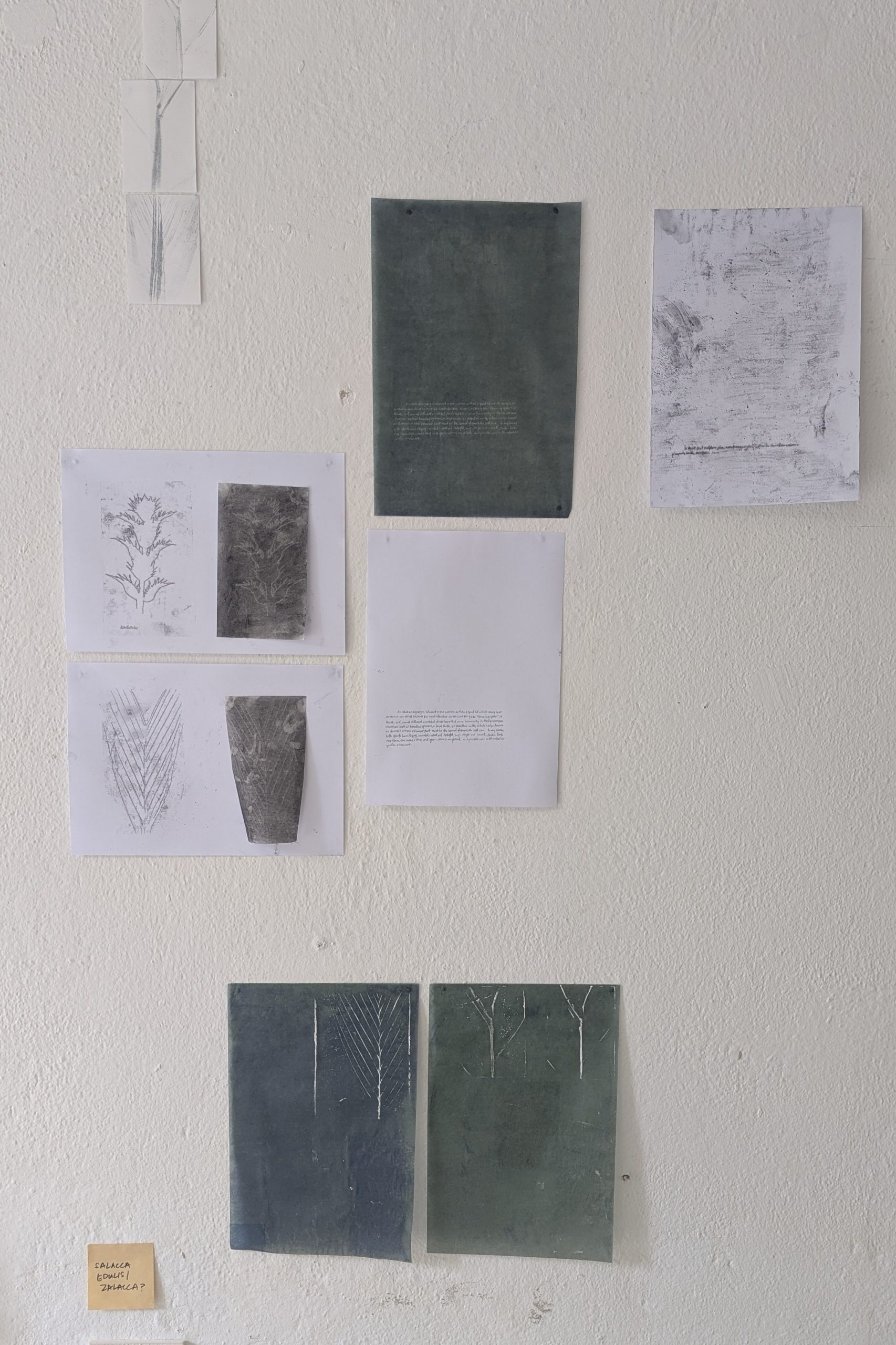 Across the works, I am interested in how forms shift through processes of transmission. Working with low-res scans, transfer materials and patterning, the project explores the methods of reproduction as both a technical and cultural act. By destabilising familiar artefacts and forms, I examine how monuments are not only inherited but also being rewritten through acts of documentation and replication. Copying thus becomes a way to look at how inherited structures—architectural, botanical, archival—are mediated through the tools, labour and material knowledge of those who remake them.