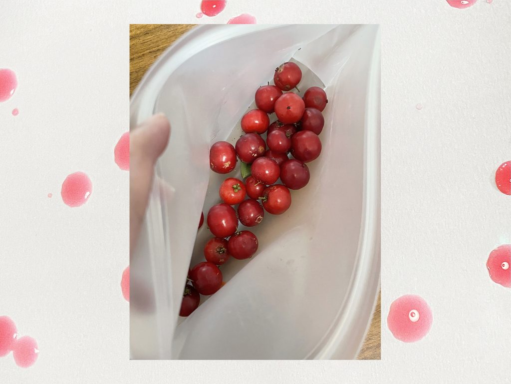 Magenta ink from fallen fruit.