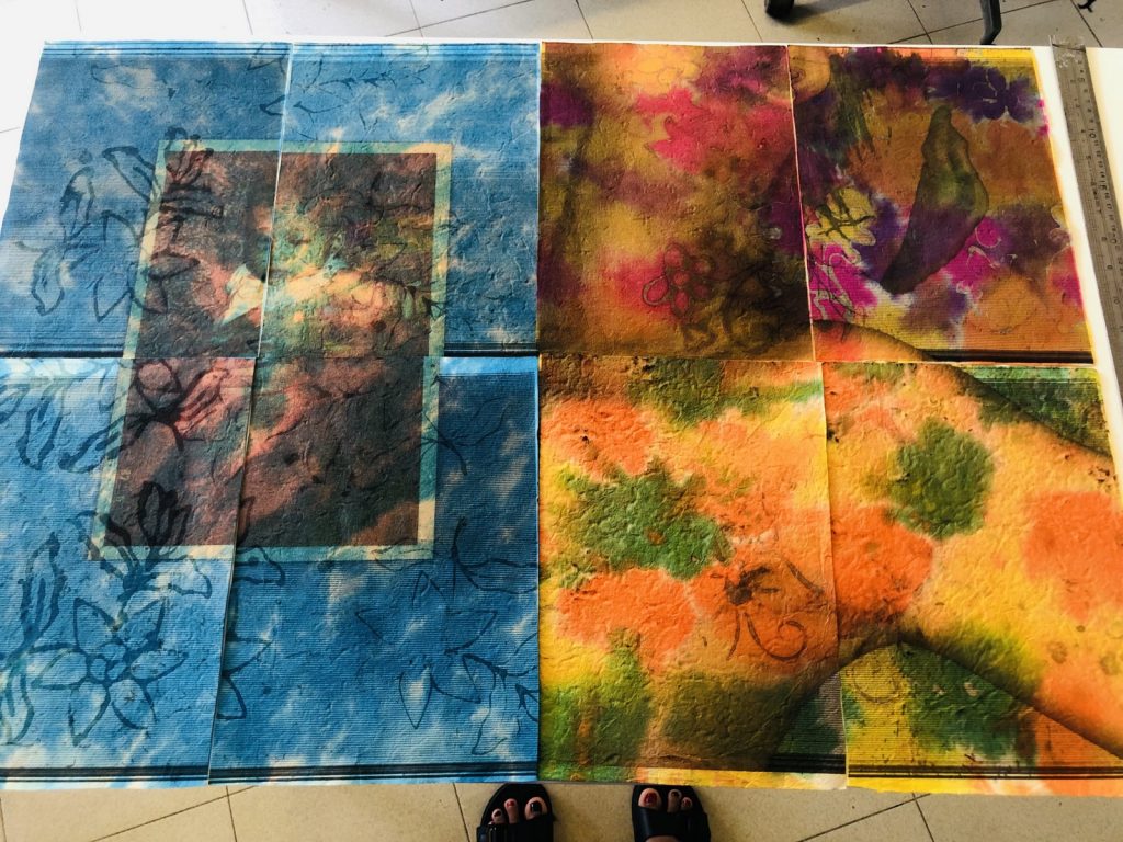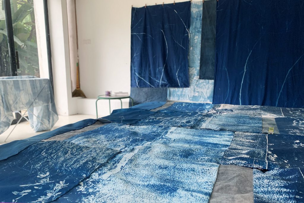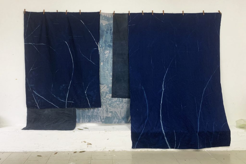 “In my residency, I kept finding myself expanding that catalogue and made a project I call sa hardin, may bukas. Rimbun Dahan has allowed me to depict my own garden that champions life – a way of reclaiming. Through cyanotype printing and by mending images of nature and city textures, I went further by finding likeness to humanity’s persistence to exist even in spaces that constantly hinder growth and inflict destruction. I’m referencing from my own narrative and from friends’ common sentiment on surviving Metro Manila. More and more are lost. Like foliage struggling to grow in corners of a city, we learn to look at different forms of death and reflect on what remains. Fear grows because everything seems to be repeating itself and we assume where it is heading.