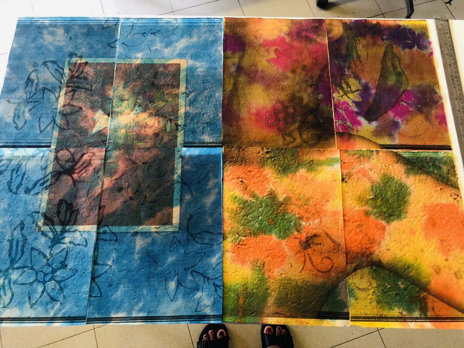 Since Shwe moved to Chiang Mai in November 2022, she has become interested to experiment with printing these scanner-generated self-portrait images on Saa Paper, traditional handmade paper that is very common in Northern Thailand, which is also very similar to Shan Sakku (Shan Paper) in Myanmar. The surface of the Saa Paper with a skin-like feel plus dried flowers and leaves embedded functions as a contemplative material to exhibit a body in a tender way, alongside the popularity of the paper in Thailand and Myanmar as a layer of storytelling for Shwe’s movement through and connection with both countries.