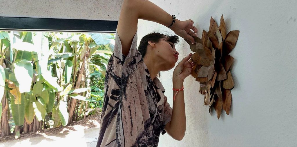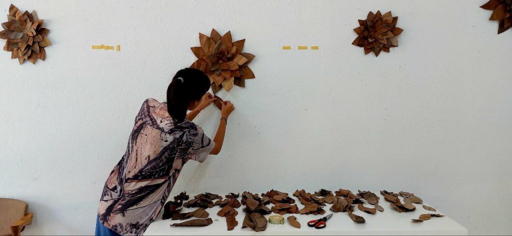 I see dead leaves drop from the trees every morning at Rimbun Dahan. These dead leaves really attracted my eyes because of their unique and original form, colours and textures. I started to wonder, what can I do to transform this dead leaf into a work of art that could speak about the forest and water?