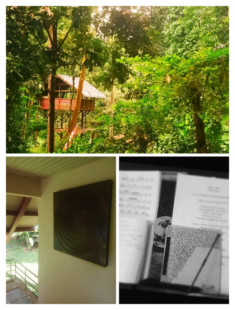 My tenure at Rimbun Dahan has removed me from the racing machinery of city existence, and opened me up to redirect my musical journey. Here I am given license to pursue a solo album that accepts realist commercial standards, while crucially returning to the beauty and parity of nature and the communal. My main focus here has entailed the sharpening of an artistic style where an East/West fusion serves the universal receiver, ideally sparking a conjunct spectrum of response and activation from both the proud listener and the inspired arts practitioner. The lyrical work meanwhile should speak for a silent majority, beyond the introspection and catharsis of the songwriter. For my current process, I have deliberately eschewed the luxury of modern studio approaches, making do with only voice, guitar, the humble dabruka hand drum, and maracas to shape the harmonic and rhythmic foundations. With a white canvas to express melody lines and inflections to my taste, I am also prompted to record previously suppressed traditional rhythms myself without relying on the touch of specialist players.