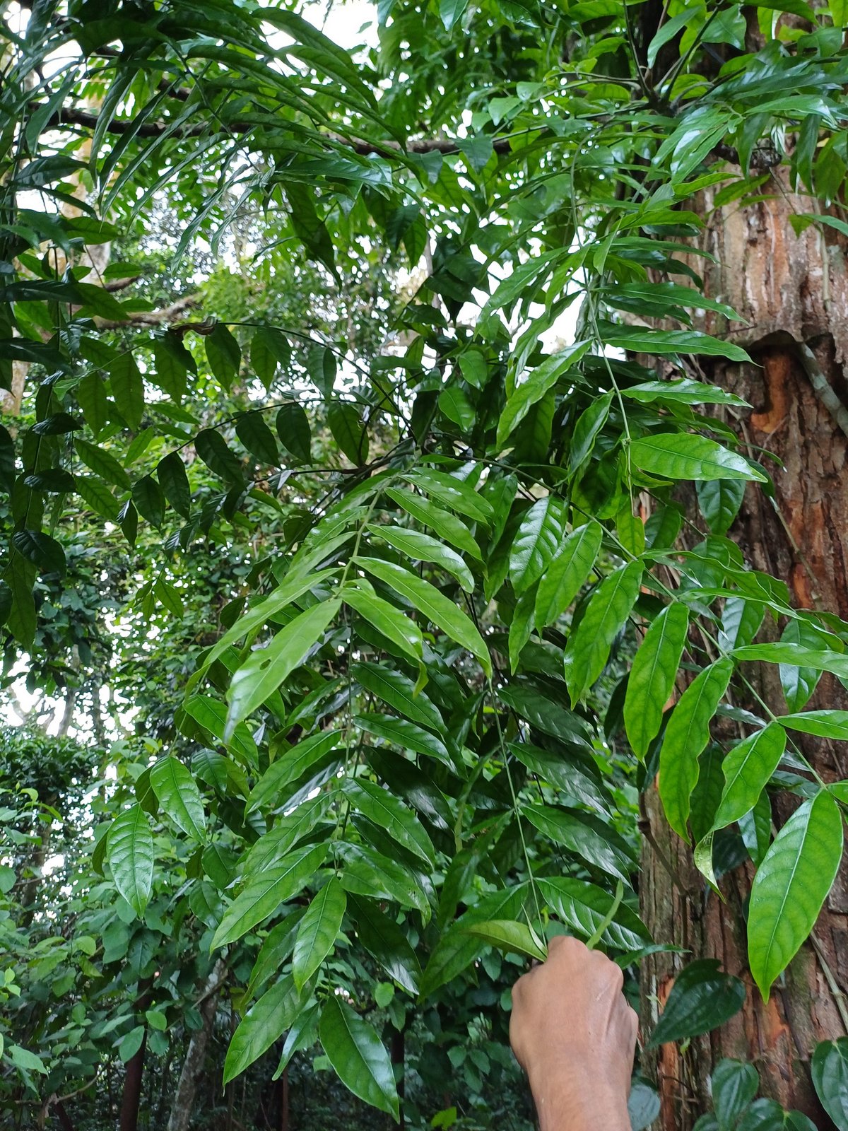 2 spp, Bangladesh-Indo China. Common in low lying forest in Malaya. To 25m, leaves w/1/2/3 prs opposite leaflets; flat glands above axis of veins or scattered over leaf. Fruit yellow. 2 specimens June 2008.