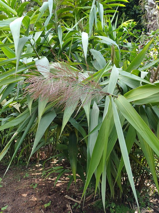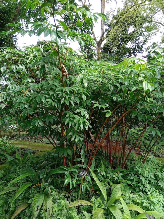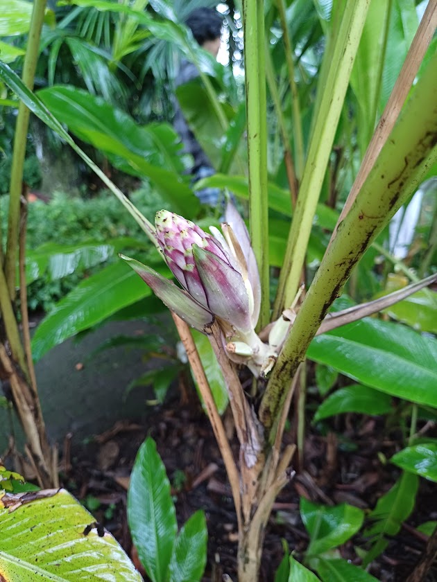 Native to Peninsular Malaysia. Grows up to shoulder height, found in clumps or solitary. Cultivated for its ornamental upright pinkish purple inflorescence.