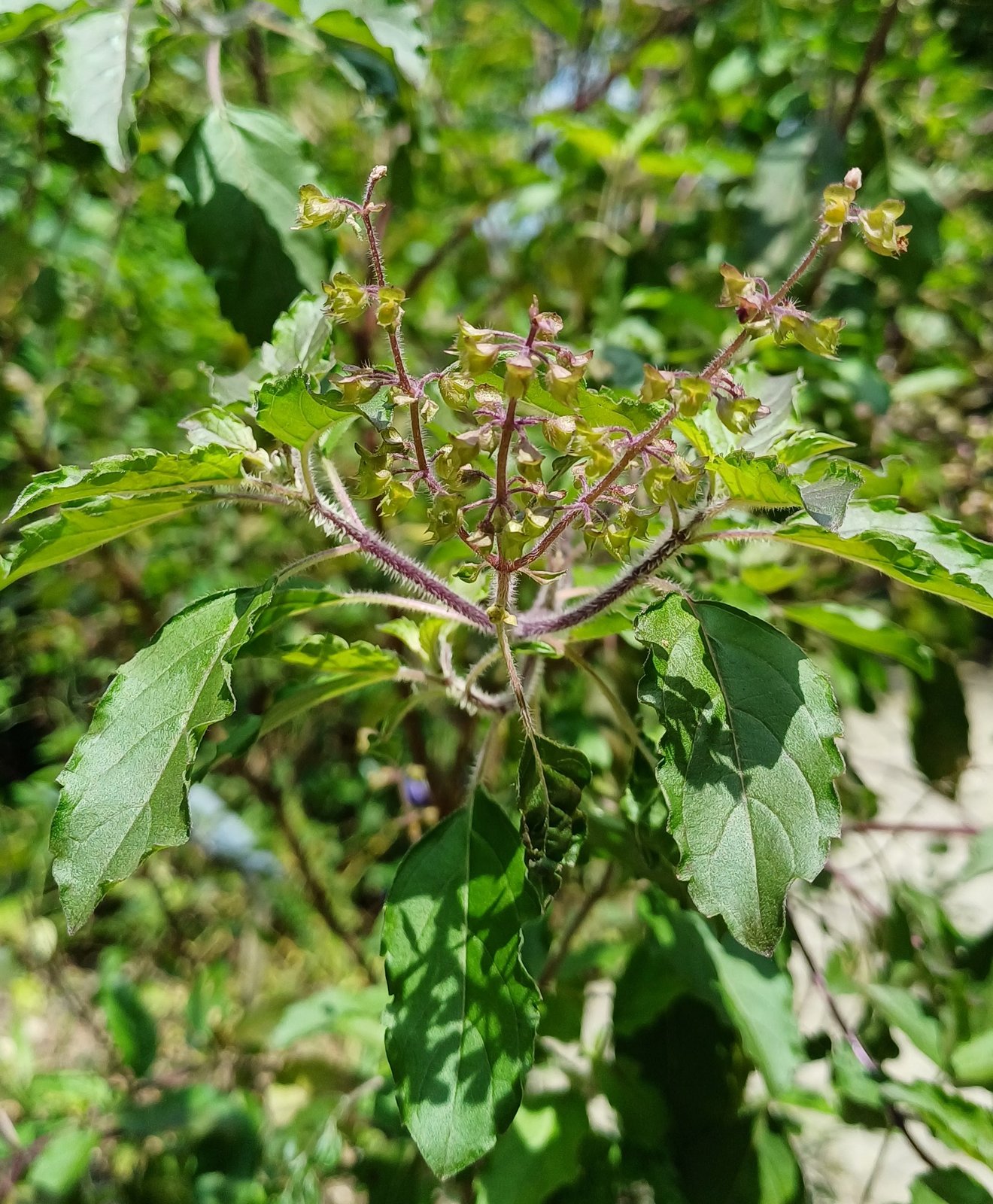 Ocimum basilicum LABIATACEAE selasih, basil Cooking herb. Boil and drink for flatulence and cough. Apply extract to ringworm, insect bites and toothache. Drunk after childbirth & to relieve irregular menstrual cycles. Soaked seeds help soothe stomach and stimulate bowel movement. The second image is of toolsi, a variety revered by the Malaysian Hindus, the third is of Lemon Basil, one of many varieties found in SE Asia.