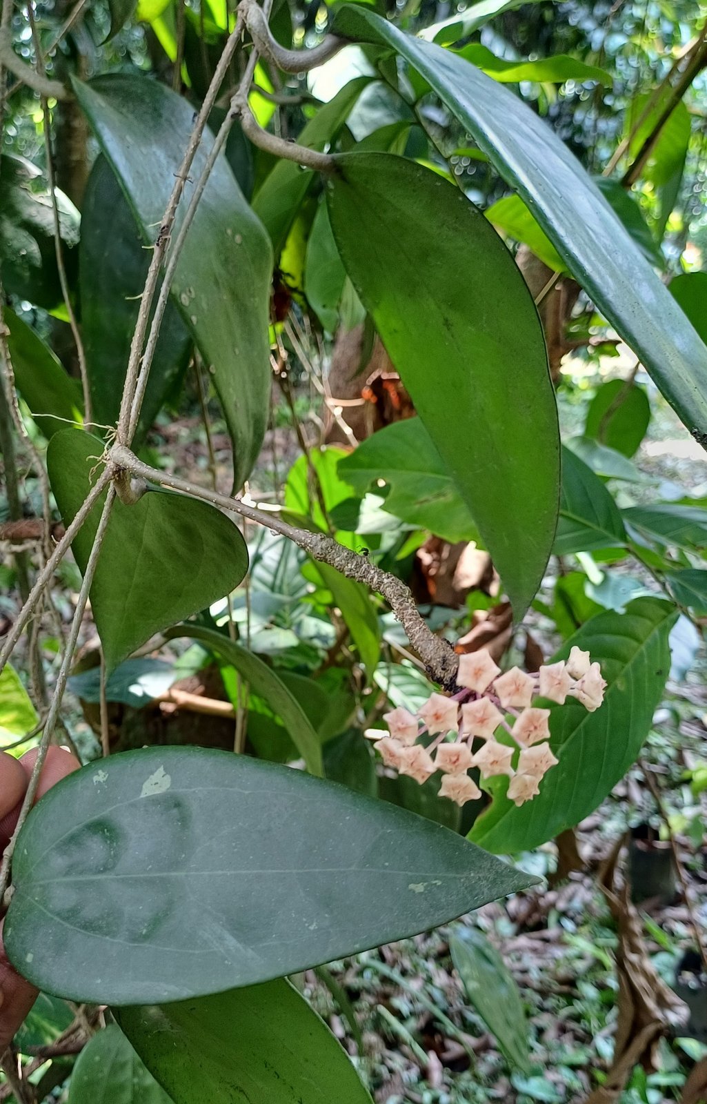 Hoya carnosa ASCLEPIADACEAE akar setebal/akar serapat East Asia to Australia and Pacific. Epiphytic herb. Toxic and narcotic latex. Fresh leaf juice with honey used for pneumonia and bronchitis; anti-inflammatory.