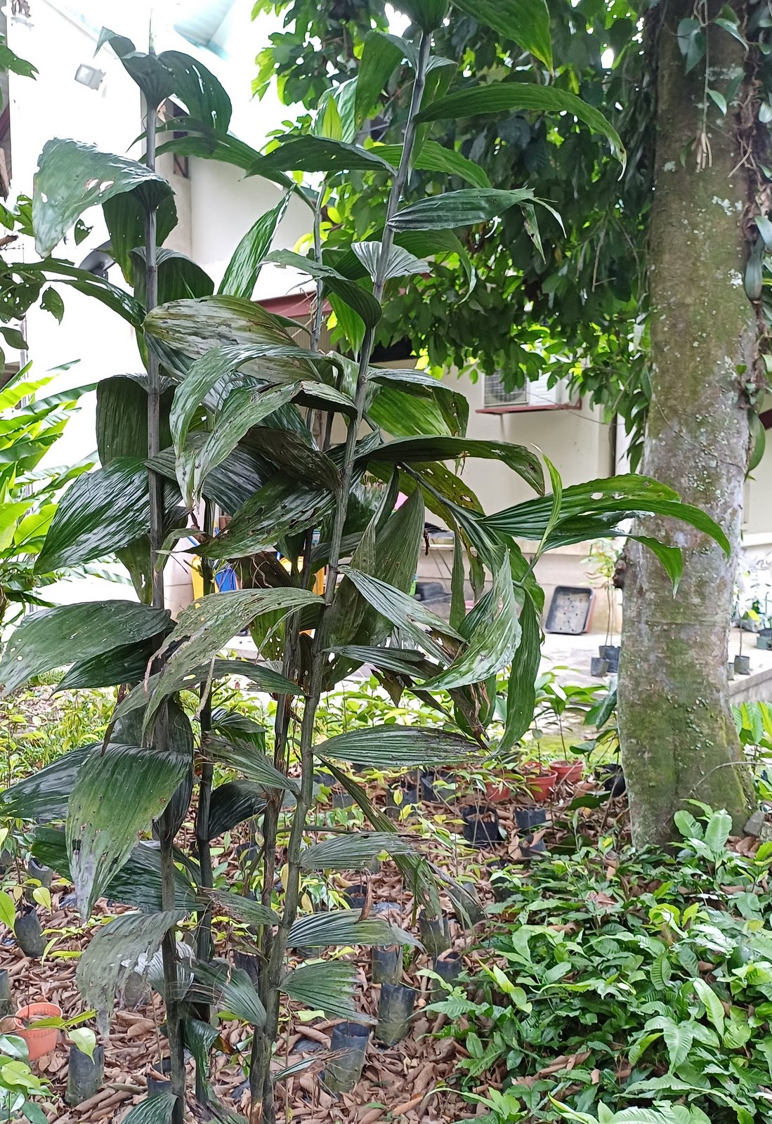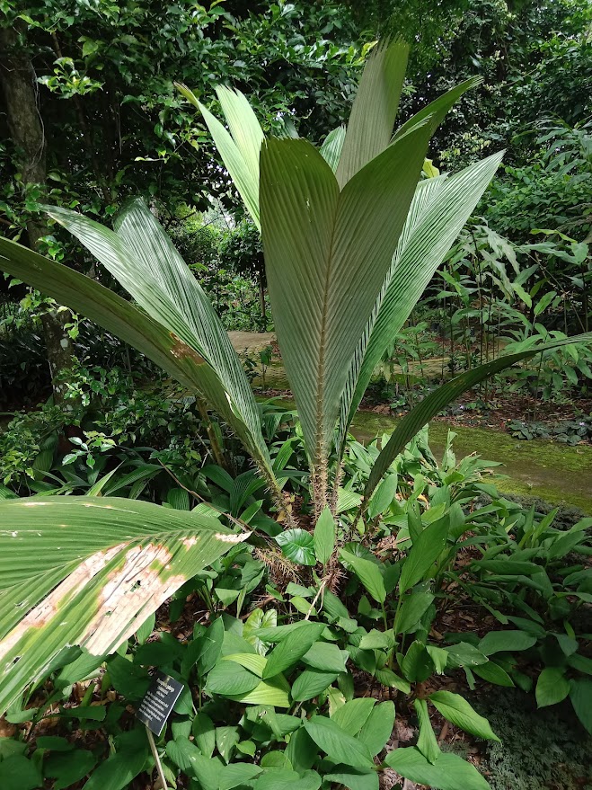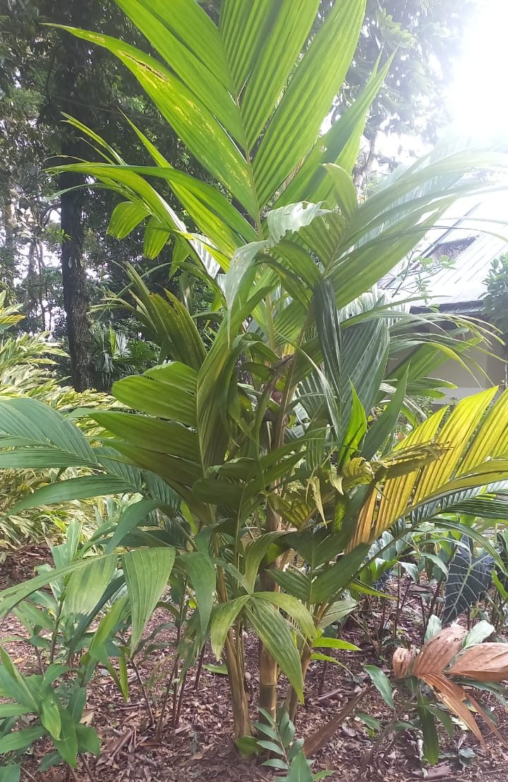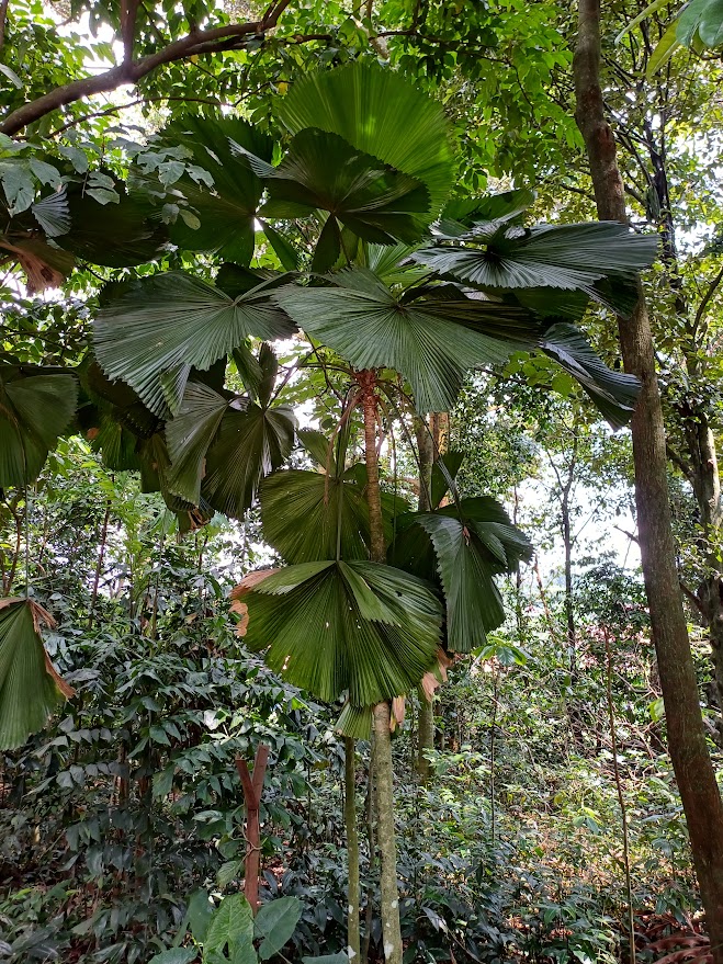 Serdang Native to Southeast Asia. Grows from 12 to an exceptional 30 metres, fan leaves with serrated shark teeth-like spines along the leaf stems. Leaves can be used to thatch roofs and make hats.