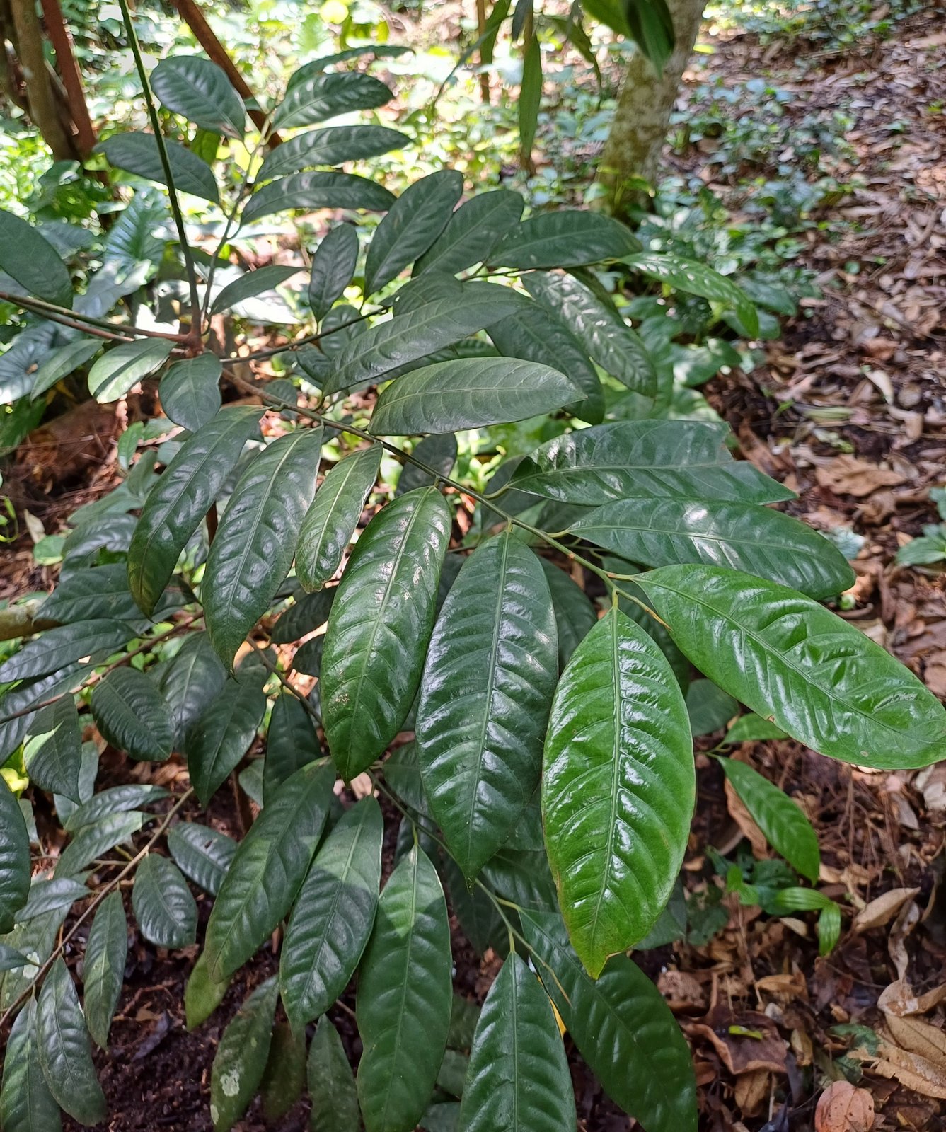 From Banka, Perak, Pahang, Selangor, Johor, Melaka. To 20m. Leaves spirally disposed, often congested at apex of branchlets and in false whorls. Flowers solitary, fruit a berry with leathery wall. 1 from TH 11/09.