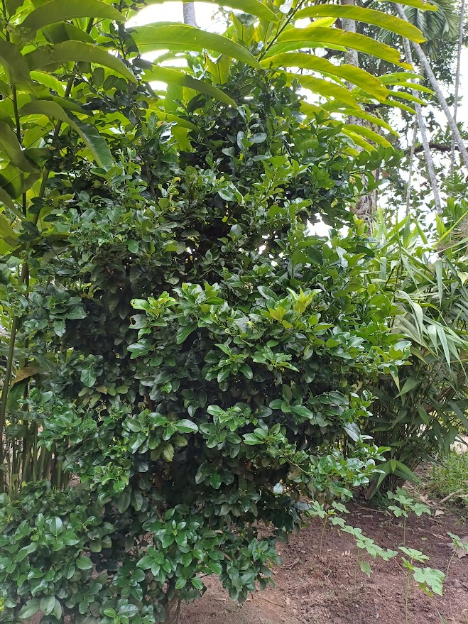 This unidentified hybrid is more hardy than the common limau purut, but retains the strong pungency of leaves and fruit, and produces excellent juice.