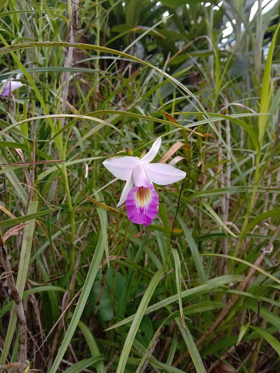 Arundina graminifolia ORCHIDACEAE bamboo orchid Cultivated for its ornamental flowers. Widespread throughout Pacific islands, Eastern and Southeast Asia. Grows on the ground and commonly found in open spaces. The edible flowers can be stir fried and tastes like bitter gourd.