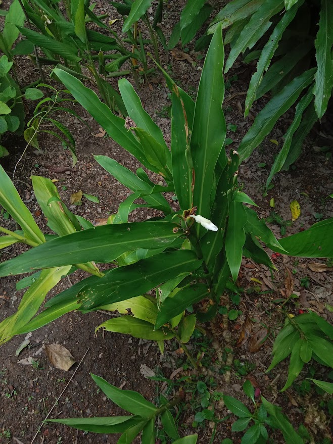 Hedychium coronarium ZINGIBERACEAE gandasuli, ginger lily Native to Asia. White fragrant flowers, reminiscent of jasmine. Flourishes near streams and waterlogged areas. Decoction of leaves drunk for indigestion. Leaves eaten with betel to treat abdominal pains. Stem sap applied to soothe swellings.