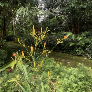 Alpinia mutica ALPINIEAE chengkenam Stems slender, up to 2 meters. Inflorescence of up to 12 flowers. Orange fruits break into 3 parts when squeezed. These from Rimba Ilmu, Universiti Malaya. Documented in 1880 by Hunter that Penang Malays used rhizome for stomach ache.