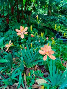 Belamcanda chinensis IRIDACEAE leopard flower China. Bitter, cool, antipyretic, antitoxic, liquifies sputum. For cough and wheezing, sore throat, rice field dermatitis.