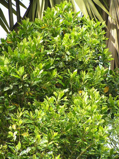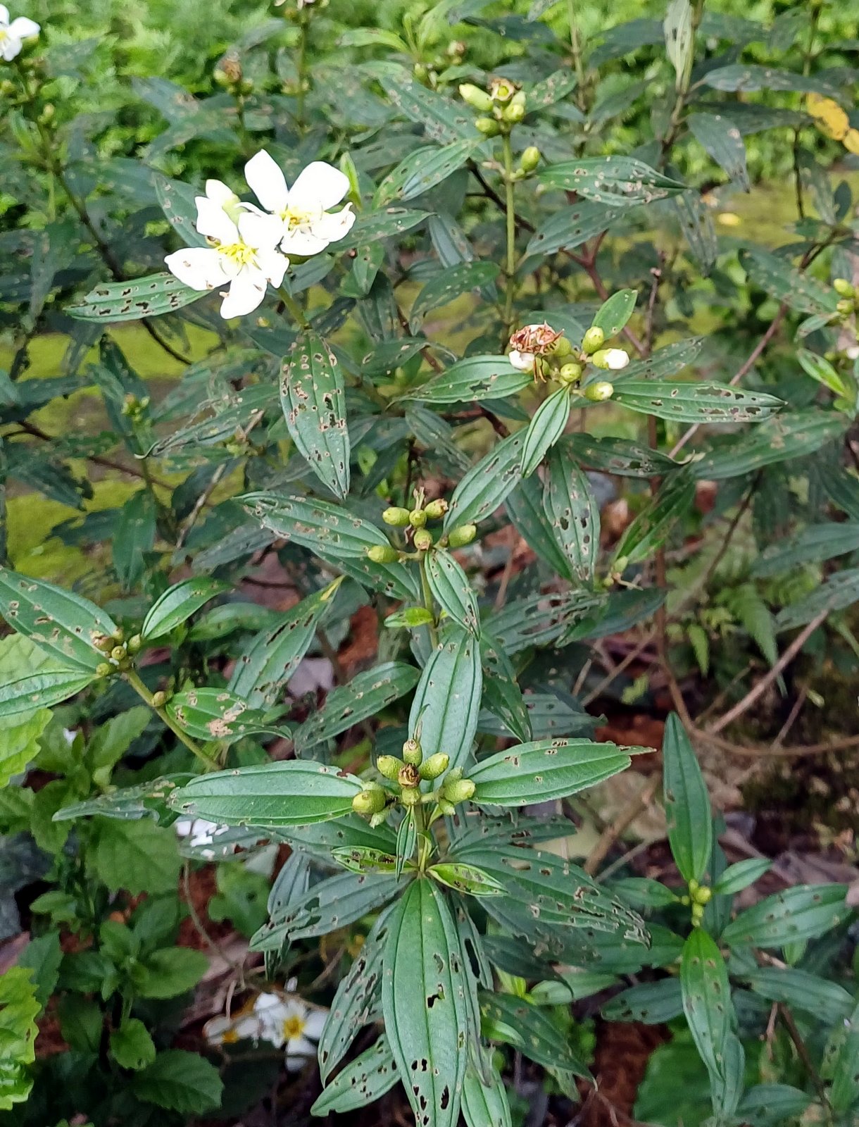 A common tropical shrub throughout India, Southeast Asia and Papua. Often planted as an ornamental for its attractive fruits. It is used in traditional medicine to treat herpes, measles, diarrhea and fever.