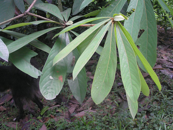 Actinodaphne sesquipedalis medang paying, pedalis Tenasserim to Borneo. Widely found thru Malaya. Leaf under yellowish brown hairy, apex usually pointed. Fruits poisonous?