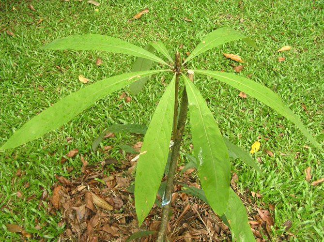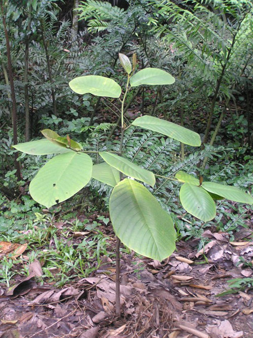 Sumatra, Siam, Java, Borneo. Malaya, mainly to south. Common small to medium trees, lowland rainforest. Terminalia branching, distinctive, big elliptic leaves. Fruits clustered w/translucent, juicy, sour, edible jacket. Trees monoecious.