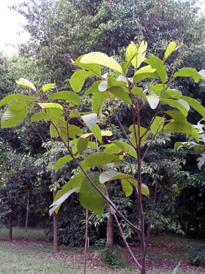 Siam, Indo-China, Sumatra, Borneo. In Malaya frequent in lowland forests, occasionally in villages. Medium tree, bole w/ short buttresses. Inflorescence solitary or paired in leaf axils, edible but gummy fruit w/ bright pink flesh.