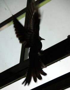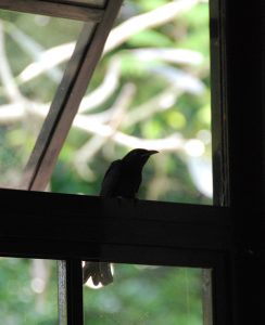 On the same day as the owl sighting, a drongo cuckoo flew into the main house at Rimbun Dahan and became disoriented and trapped in the television room. After barging about and crashing into the walls and ceiling, it finally managed to find its way out through an open window, and flew off apparently none the worse for wear.