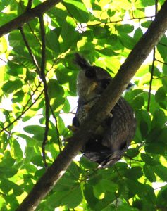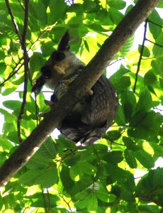 The owl was very tolerant of our staring, and even more so when we finally caught it on camera a few days later while disturbing its daytime nap. We were lucky enough to have our friends Akshay Sateesh and Brooke Resh visiting with their digital SLR to take some good shots.