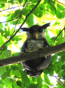 The barred eagle-owl is the largest of several species of owl occasionally encountered at Rimbun Dahan. Other owls that have been seen include the barn owl (Tyto alba) and a smaller scops-owl.
