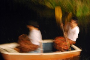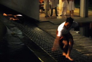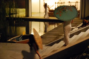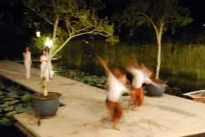 Gesek-Gosok was performed on New Year’s Eve in and around the reflective pool at Rimbun Dahan. To Indochine-themed music, the group of seven dancers from ASWARA and Balletbase paraded with parasols, lowered themselves into water troughs, and paddled serenely through the waterlilies, to the great delight of the onlookers. Photographs below by Akshay Sateesh.