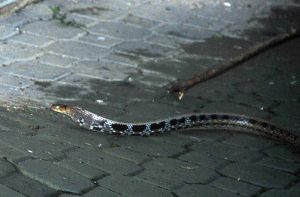 Our snake of the month is the Copperhead Ratsnake (Elaphe radiata Boie 1827), otherwise known as the Radiated Ratsnake. A fine specimen of this large non-venomous snake, over a meter long, was found this week in one of the artists’ studios.