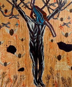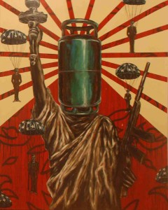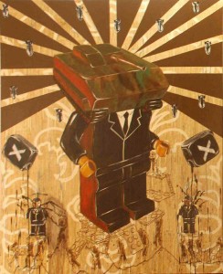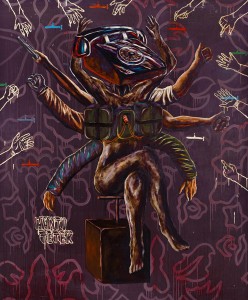 His new body of works examines the connection between existence, religion, politics and its relation in our contemporary social context. Using painting as a medium, Justin’s residency exhibition entitled Gods, Heroes & Myths represents and questions the human capability to distort the truth. Inspired and conceived between the 50th Merdeka celebrations and the 12th Malaysian General Elections, Justin uses random people and fictional characters to question various events surrounding the nation and people’s perception towards them. In relation, the works also explore subjects like manipulation, power and religion.