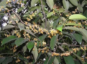 The flowers are tiny, perhaps half a centimeter, but the flush on the branches gives a pinky hue. We look forward to posting news of fruit setting, but so far no pollinators have been observed.