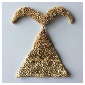 Soraya Abidin (b. 1971) is a textile artist based in Sydney, Australia. The subjects and materials she uses to create her works are born of a love for the Primitive and Spiritual practices within her Malay cultural heritage. Soraya embroiders in natural raffia representing matter from the jungle and embellishes with gold leaf, as a mark of status and the prestigious gold culture worn by her aristocratic ancestors. During as recent visit to Malaysia, where her father is from, interpreted inquiries of her family members revealed her art making practice as an inherent genetic trait directly traceable to her Malay culture, which the artist expands on below: