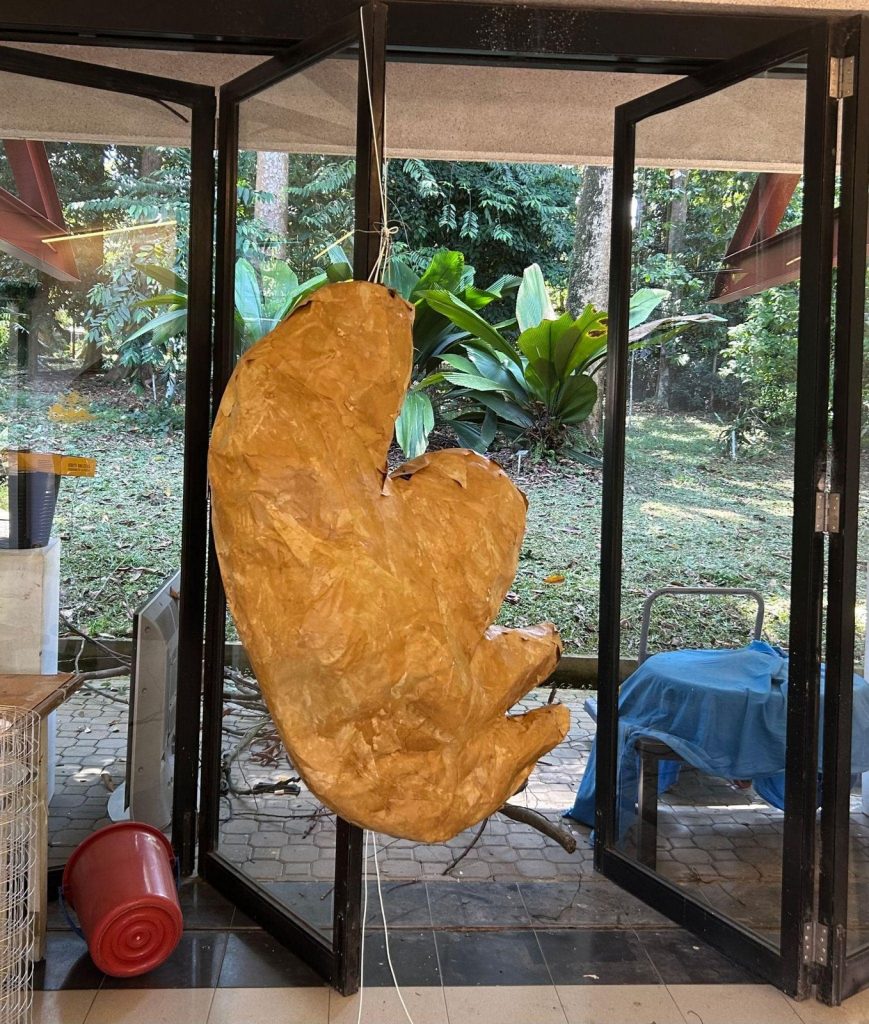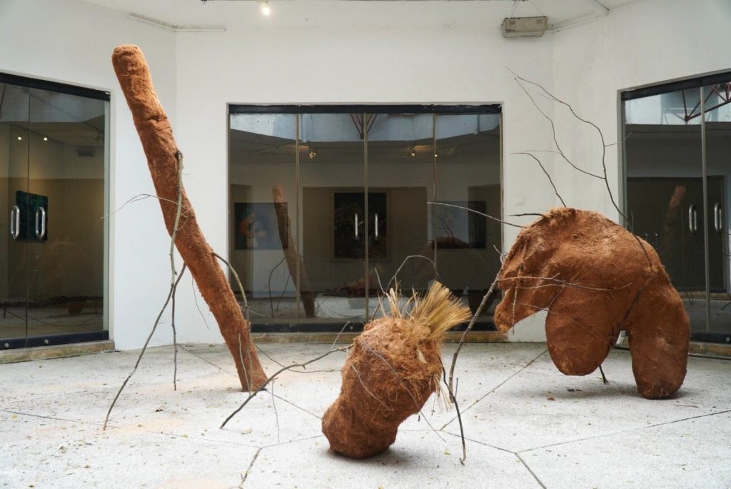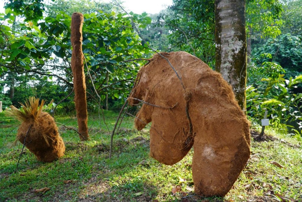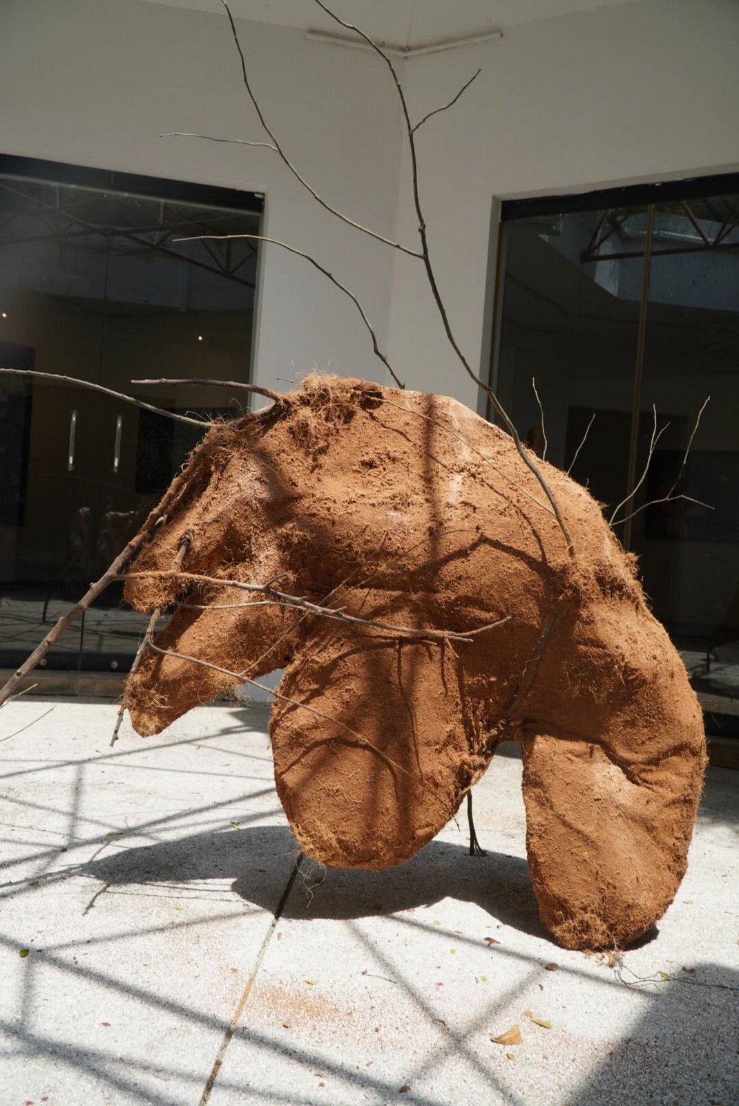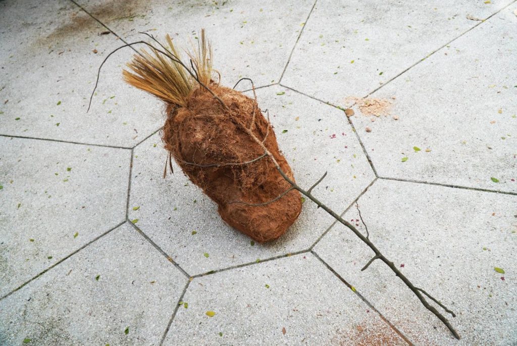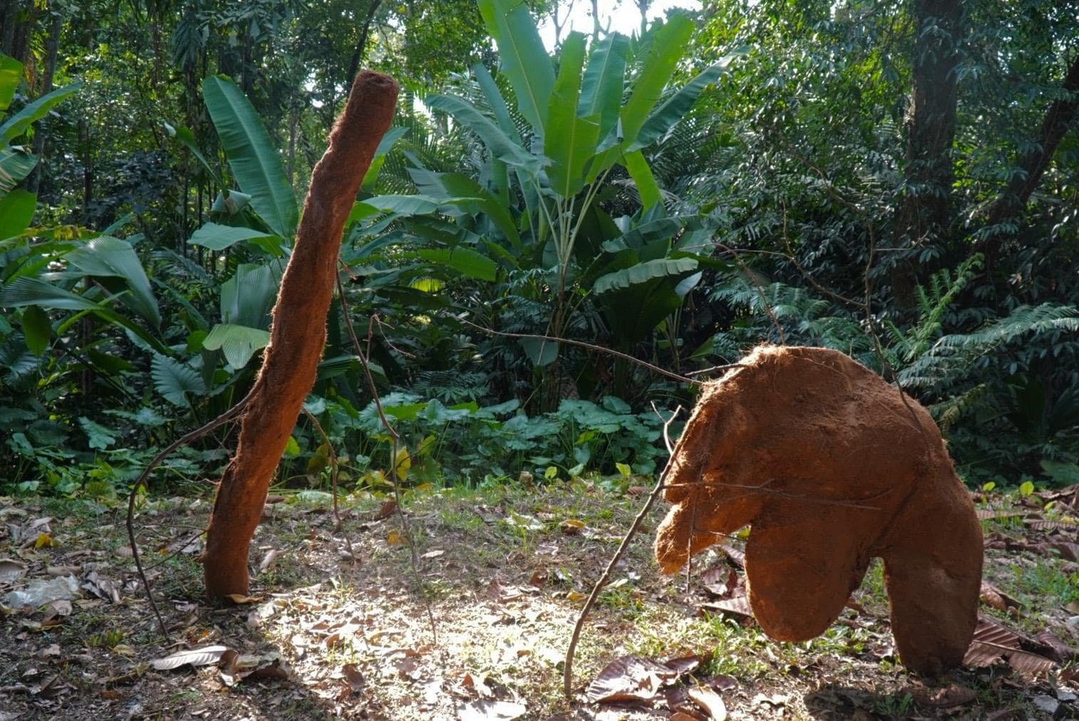 During my one-month residency in Malaysia, I chose to work entirely with materials gathered from the surrounding landscapes: burnt soil, coconut husks, and fallen branches. From these fragments of the environment, I created a series of sculptural creatures that stand and balance on their branch limbs, as though drawing support and life from the very materials they are made of.