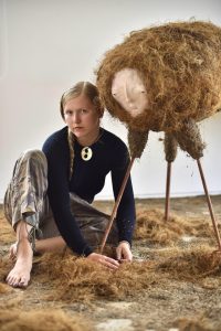 As I worked, I found myself drawn to the idea of being lost in one’s own body, searching for a sense of belonging and grounding in a vessel that never quite feels like home. This internal displacement: of seeking support within the body but never fully arriving, led me back to the land. That’s why I chose to build the creatures from soil, coconut husks, and fallen branches: all materials that had already returned to the earth, and yet, through this process, found a new life within my forms. In this quiet cycle of return and renewal, the sculptures embody a journey where longing meets stillness, and the revelation emerges that perhaps the belonging we seek inside ourselves has always existed in the ground beneath us.
